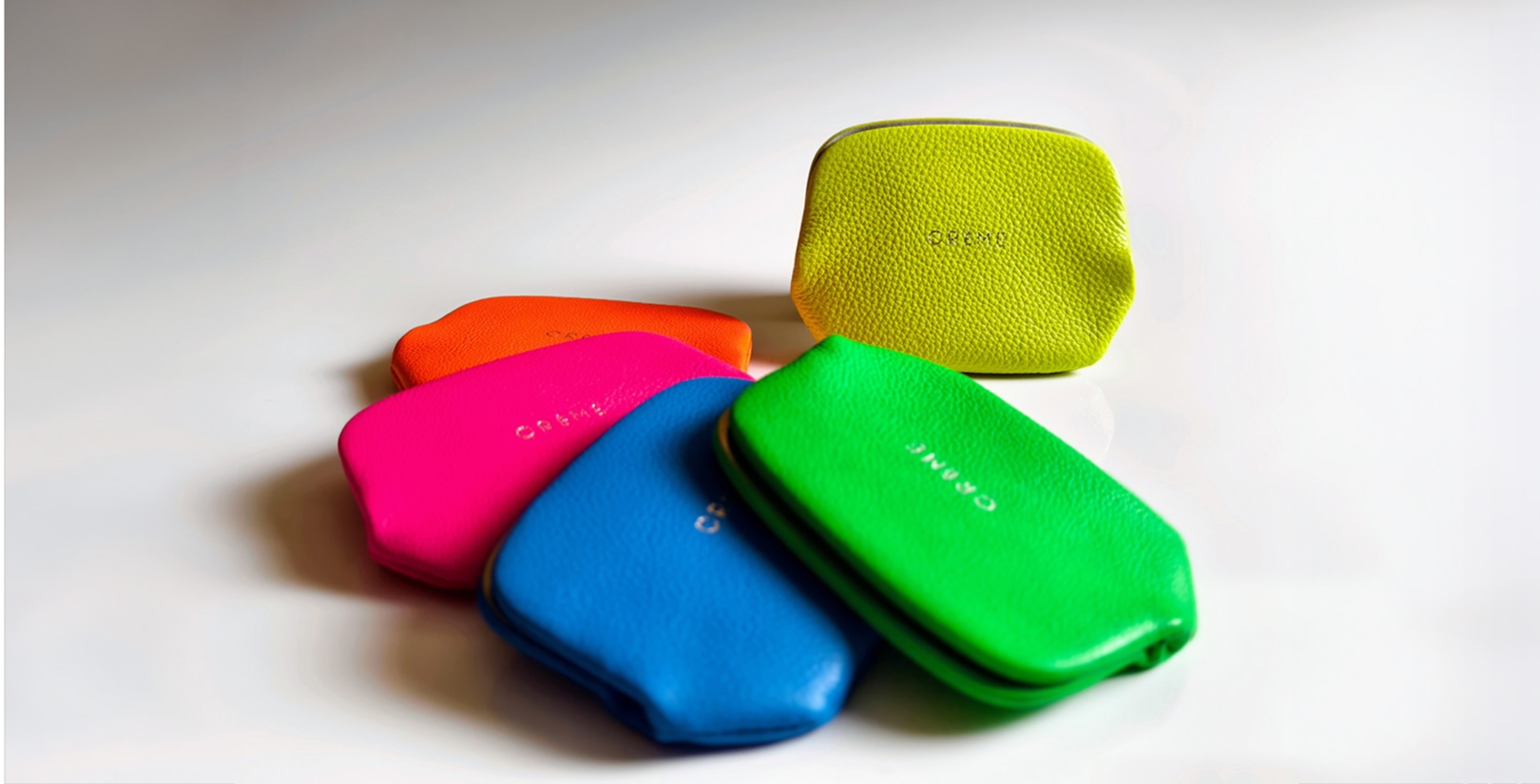 牛革をカラフルな蛍光色(ネオンカラー)に染めた未来的でノスタルジーを感じるシリーズです。