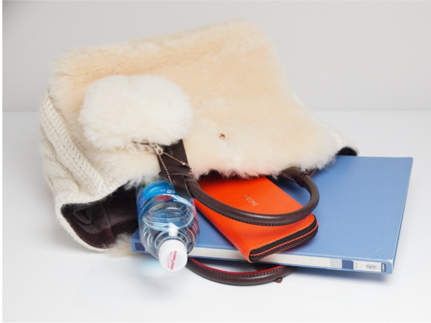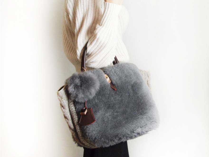 ムートンと手編みアルパカニットのトートバッグ大サイズ ムートンポーチ付き |